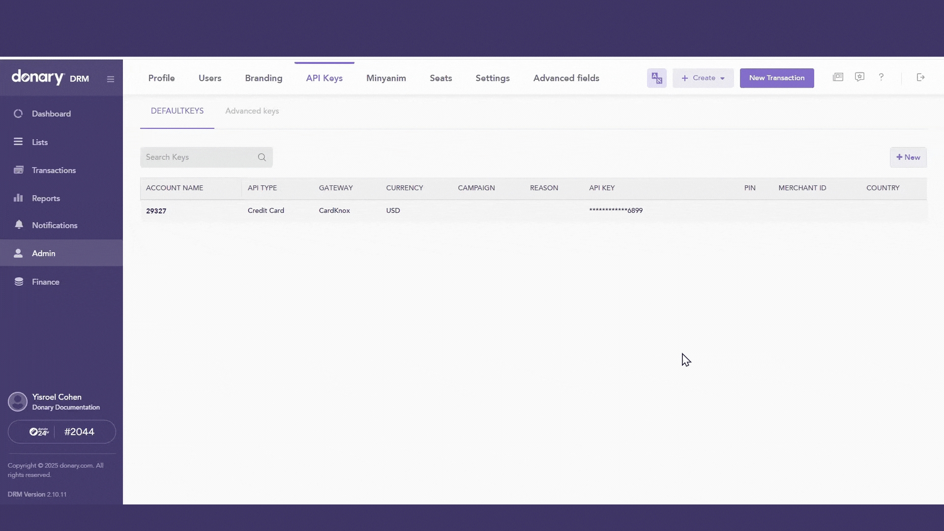 For example, you might create a campaign named “Shabbos Meron”. Donations made under this campaign would be associated with that specific cause and processed using its designated API key.