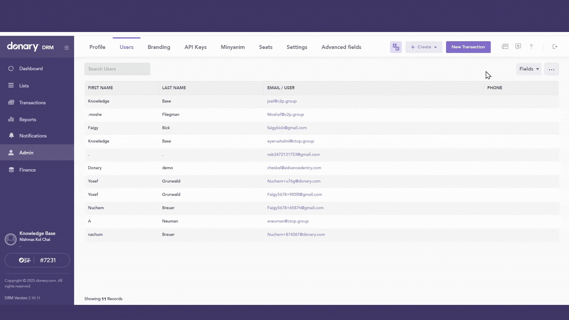 Only the Donary admin can create new user accounts in the DRM. Organizations cannot add users. However, organizations are authorized to modify an existing user's permissions and credentials. For details on access levels, refer to the User’s permissions section below.